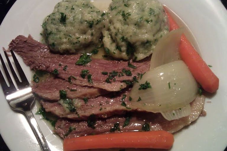 Boiled beef and dumplings is to this day a popular meal in the UK. It is served with carrots and dumplings frequently- boiled beef in my home was made with carrots, potato and onion.